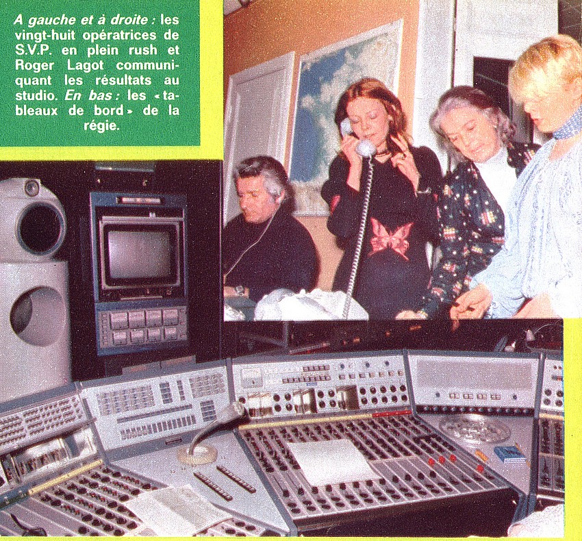 "La Une est à Vous" est un programme que l'on doit à la fertile imagination de Guy Lux. Présentée par l'incontournable Bernard Golay, cette émission permettait aux téléspectateurs de l'époque de composer eux-mêmes leur programme en appelant SVP 11 11. Là, ci-dessous, Roger Lago et son équipe recevaient les appels. Ces derniers qui structuraient ainsi chaque "Une est à Vous" en fonction des séries télévisées ayant recueilli le plus de grand nombre de suffrages.